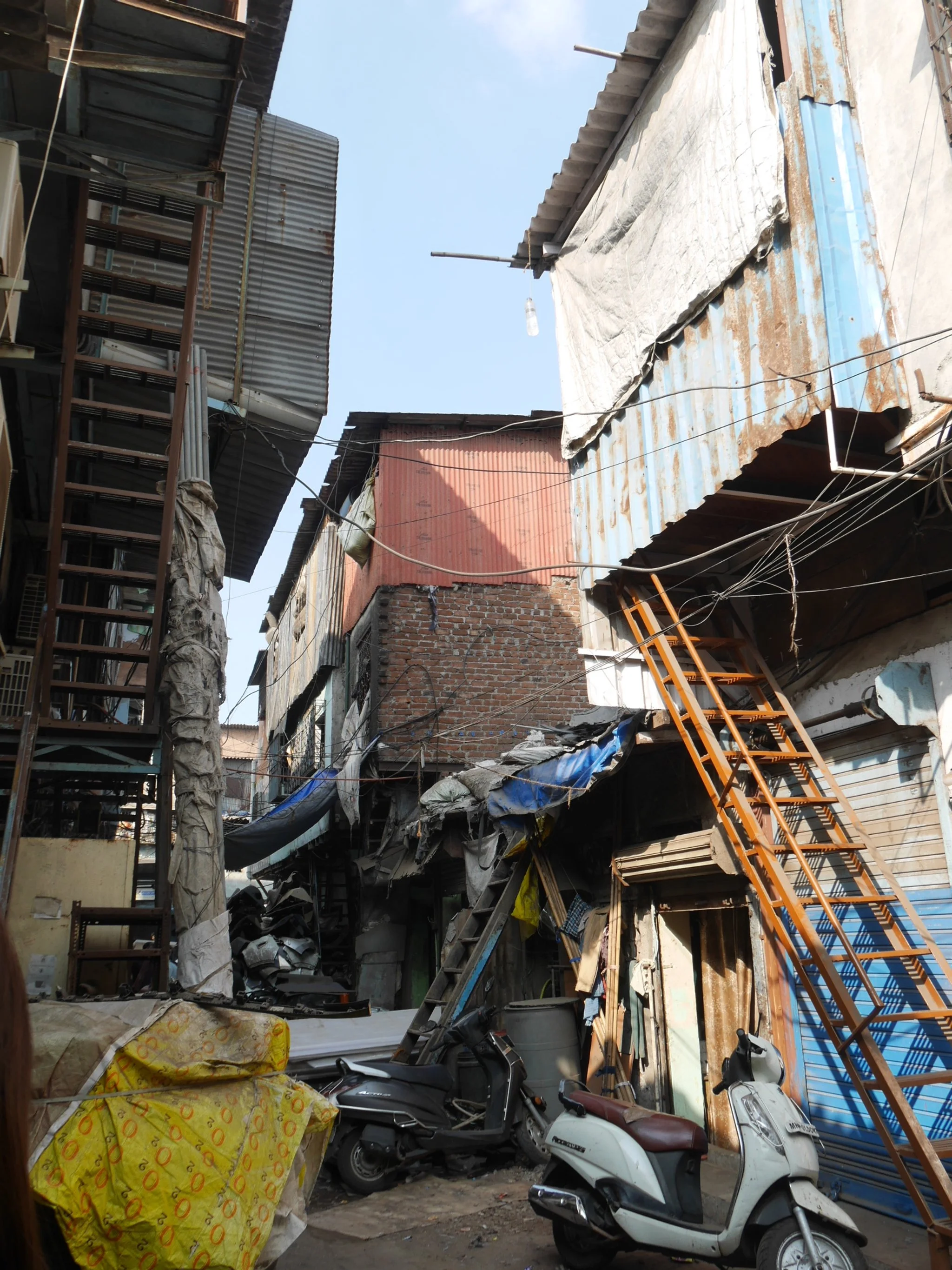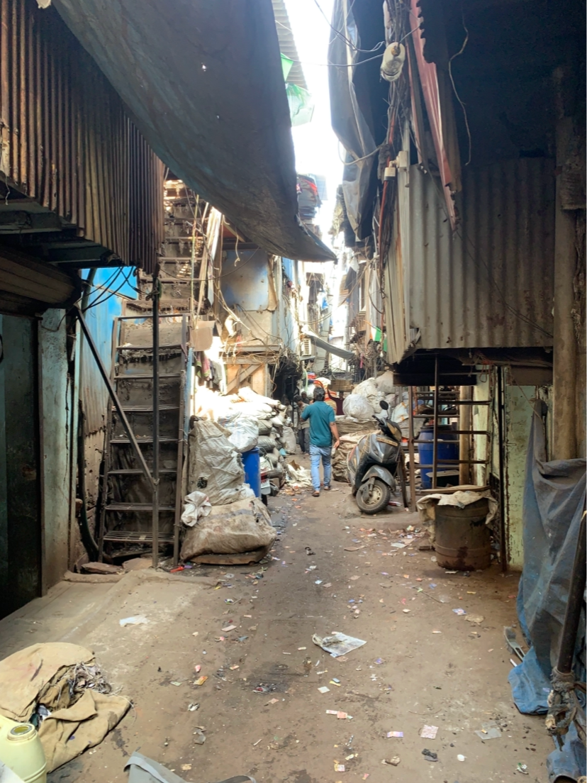 スラム街の一角。ここの建物の中で低賃金で働いています。想像できない。