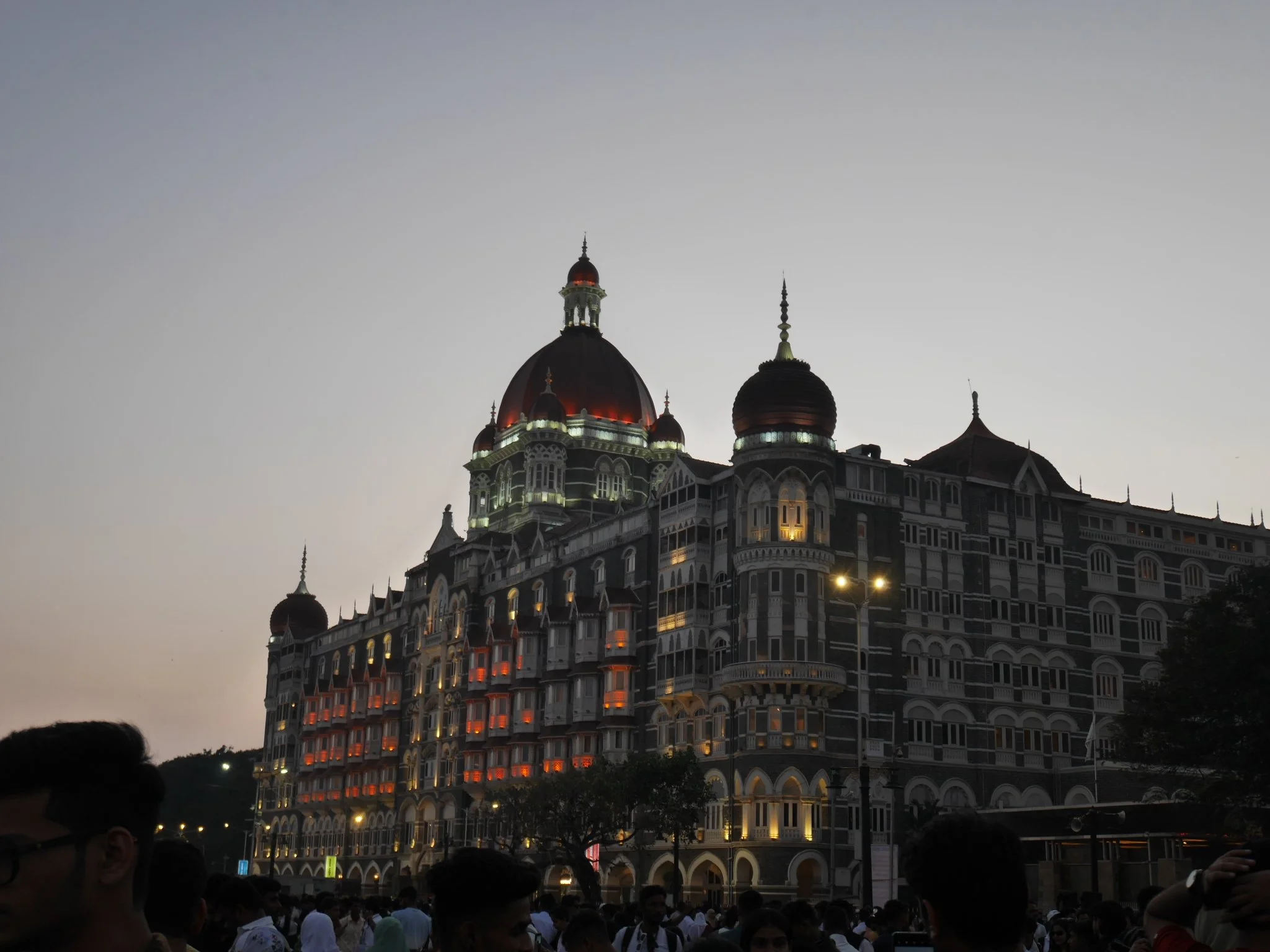 夕焼けの時間のタージマハルプレイス。ここは、2008年にテロが実際に起きたホテル。世界のどこに居ても安全な時があるし、どこに居ても危険な時がある。