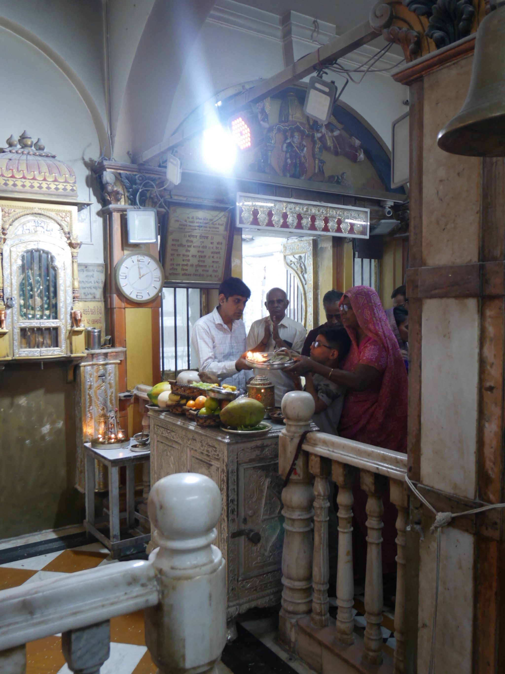 寺院では、キールタンを30分ほど歌った後、一人一人、火が灯ったトレーを回し、祭壇へ感謝を捧げます。
